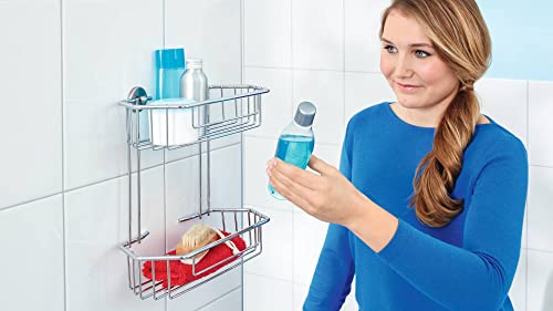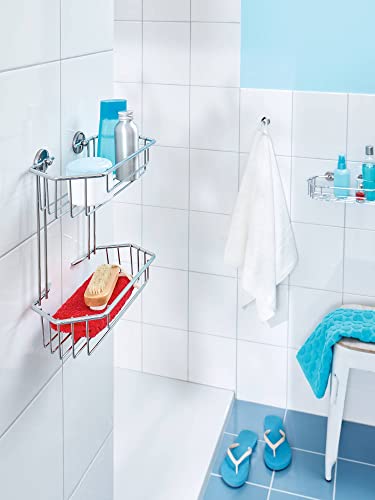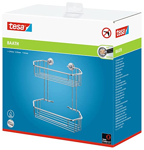 Cestino per doccia in metallo tesa Baath, metallo cromato, autoadesivo, tecnologia di montaggio adesiva, 278 mm x 270 mm x 125 mm