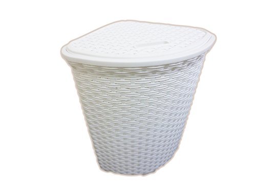 52L Cestino grande per biancheria e porta oggetti in plastica rattan con angolo stendibiancheria, plastica, White, 58 x 40 x 40 cm