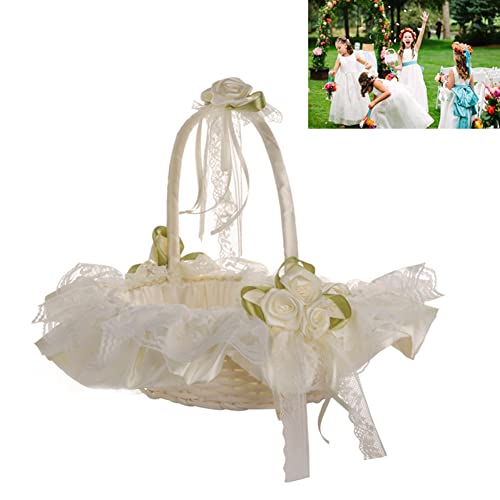 Cestino per matrimonio con fiori da ragazza, bianco romantico fiore ragazza cestino per matrimonio fiore pizzo nastro cestino per cerimonia nuziale decorazione banchetti