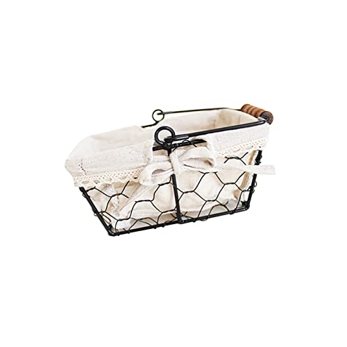 Cestino Portaoggetti in Filo Metallico, Contenitore per Il Pane, Manico Pieghevole in Legno con Rivestimento in Tessuto, Cestini per Servire Alimenti, Adatti per Snack, (Piazza)