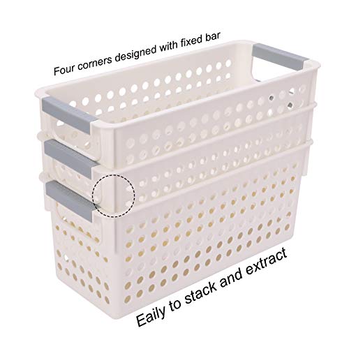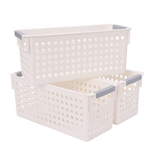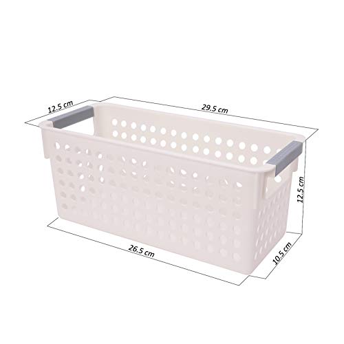 Cestino Portaoggetti in Plastica,Cestini da Scaffale,Cestini per Giornali e Riviste,Set di 3 (Bianco,S)