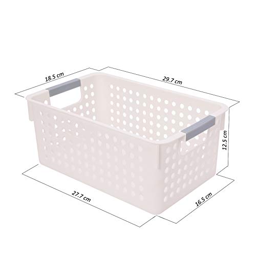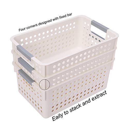 Cestino Portaoggetti in Plastica,Cestini da Scaffale,Cestini per Giornali e Riviste,Set di 3 (Bianco,M)