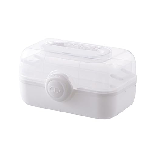 Cestino Portaoggetti in Plastica per Pronto Soccorso, Contenitore per Armadietto dei Medicinali in Plastica con Scomparti e Serratura, Organizzatore Trasparente per Kit di Pronto Soccorso di(bianco)