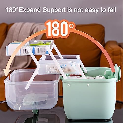Dimensioni e cassetto del termometro: Dimensioni: 11 x 7,9 x 6,3 cm (L x P x A). Apri questa scatola di immagazzinaggio della medicina, spiegata a 180 gradi, mostra come forma del gradino. Facile trovare le cose che ti servono. con un piccolo cassetto esclusivo per termometri