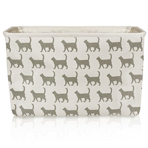 Cestino portaoggetti in tela cat. Bianco - Cestino in tessuto rettangolo di alta qualità con motivo gatto grigio - Perfetto per la conservazione domestica, i tessuti oi giocattoli. Dimensioni: 40 cm x 30 cm x 25 cm