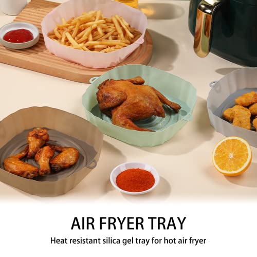 Il tuo pacchetto: 3 tappetini in silicone per friggitrice ad aria, possono essere facilmente puliti e riutilizzati per soddisfare le tue esigenze quotidiane di cottura, cottura e ricambio. Sano e sicuro, più ecologico della carta da forno, porta un divertimento senza fine alla tua cucina.