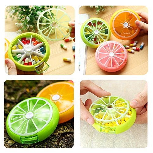 Cestlafit Portable Rotante 7 Giorni Pillola Settimanale Dispenser Organizzatore, Viaggi Medicina Tablet Dell'Organizzatore, Materiale PP, Confezione da 1, Pomelo