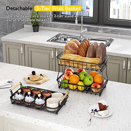 Cesto di frutta a 3 livelli: progettato per conservare frutta e verdura di varie dimensioni, questo supporto a 3 livelli con grande capacità è perfetto per tutti i tuoi prodotti: mirtilli, mele, banane, cipolle e patate, mantenendo le cose ordinatamente organizzate e risparmia spazio.
