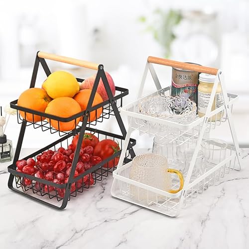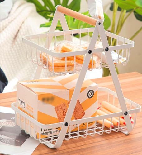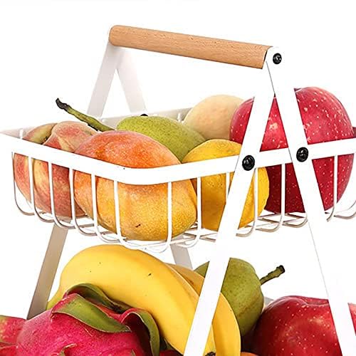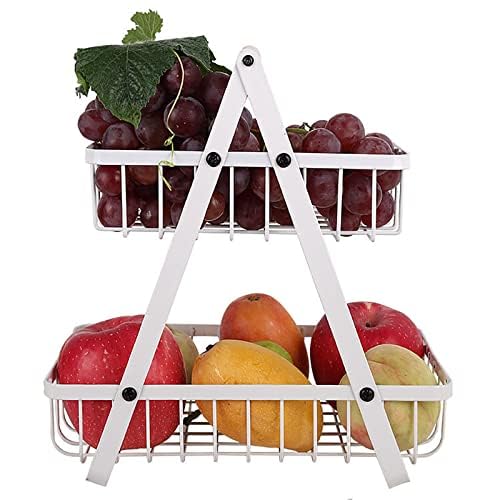 Cesto di frutta a 2 livelli,Portafrutta,Porta Frutta da Tavolo,Cesto in filo di campagna francese,per conservare e organizzare verdure,uova e altro,cucina organizzatore da tavola o da appendere,bianco
