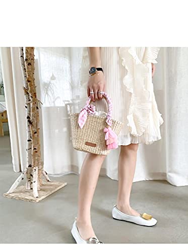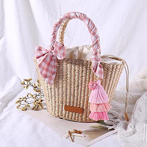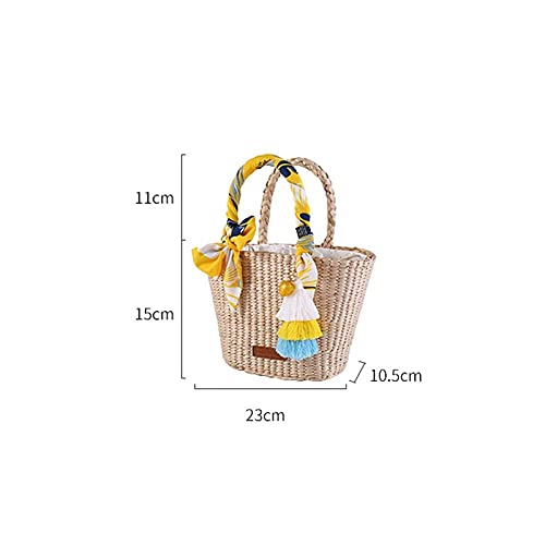 Cesto naturale Borsa di paglia fatta a mano Borse tessute Borsa da spiaggia di erba di mare Borsa con manico superiore Borsa regalo di nozze Dimensioni ridotte 15X23X10.5CM-1