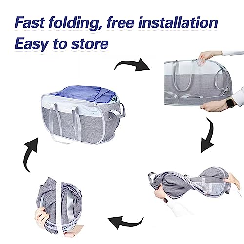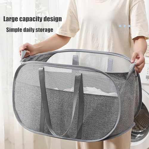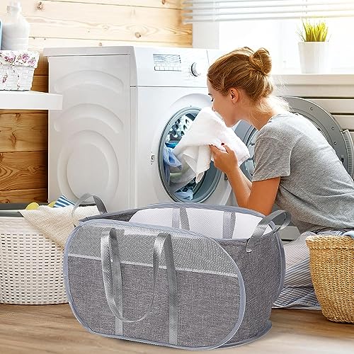 Cesto portabiancheria pop-up in rete, facile da pieghevole, portatile, con manici robusti, rete a nido d'ape, traspirante, per lavanderia, bagno, camera dei bambini, dormitorio o viaggi (grigio)