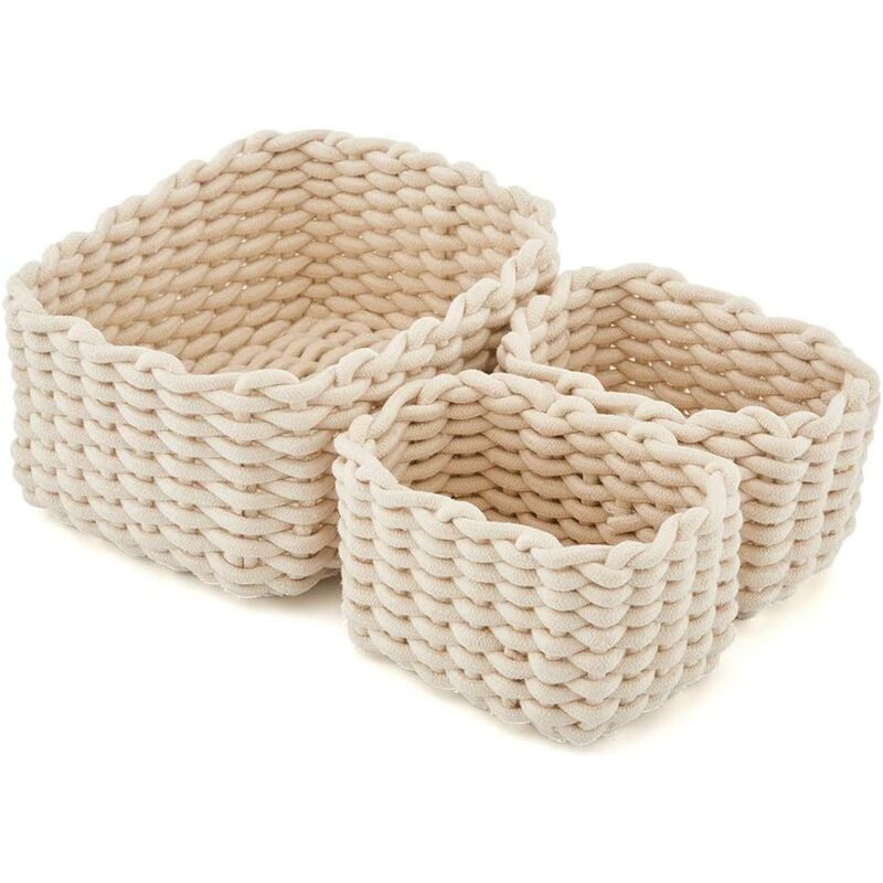 Multifunzionale e pratico - - I cesti portaoggetti sono un ottimo modo per organizzare, conservare, riporre o decorare la tua casa, appartamento o altro spazio abitativo. Usali per organizzare cassettiere, credenze, armadietti o per riporre i tuoi oggetti di uso quotidiano. [Elegante e affascinante] - Il cestino in corda di cotone ha una forma intrecciata, che ti fa sembrare elegante e bella. Un colore beige naturale che si adatta a qualsiasi stanza della tua casa. Crea una bella scena nella tua casa e decora scrivanie e tavolini da caffè con i nostri cestini moderni. [Organizzazione] - I cestini sono disponibili in 2 diverse dimensioni per la versatilità, indipendentemente dal fatto che gli oggetti alti o piccoli siano collocati nel cestino . Ideale per cesti da bagno, divisori per cassetti, organizer da scrivania, piccoli contenitori, ripostiglio per vestiti e molti altri usi. [Adatto per la scuola materna] - Il cestino in morbida corda di cotone non ha spigoli vivi e non danneggerà