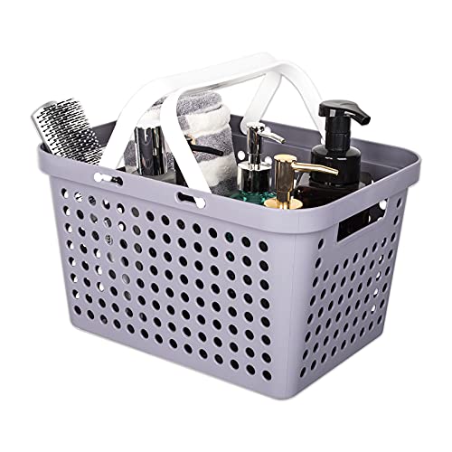 Cesto portaoggetti con manici, piccolo cestino da bagno in plastica, cestino portaoggetti per bagno, cucina, 30,5 x 22,5 x 18 cm, grigio