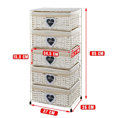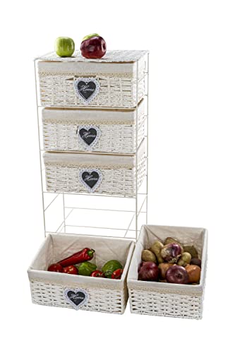 Cesto portaoggetti multistrato fatto a mano in vimini, con rivestimento in cucina, bagno, struttura in metallo (5 livelli)
