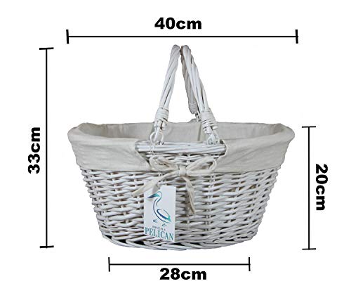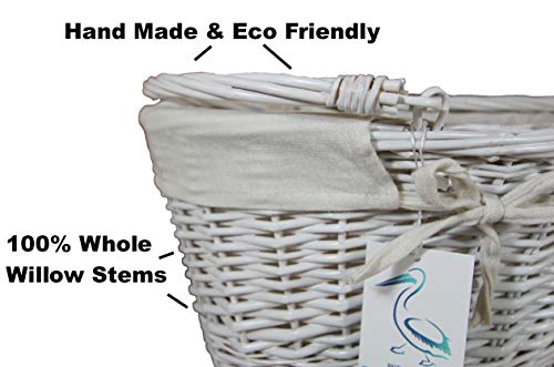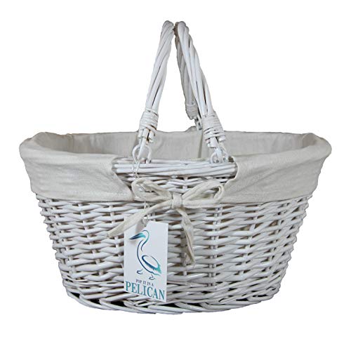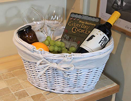 Cesto in vimini bianco foderato con manici per conservare giocattoli fare la spesa o da giardinaggio