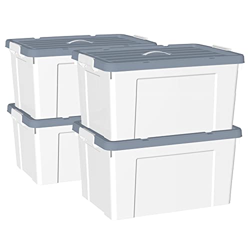 Cetomo Scatola portaoggetti in plastica 90L*4, contenitore per organizzare con coperchio durevole e fibbie di chiusura sicura, impilabile e annidabile, 4 pezzi, bianco