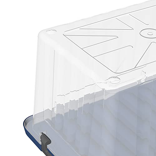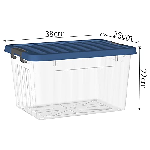Cetomo Scatola portaoggetti in plastica trasparente da 15 l x 4, contenitore organizzativo con coperchio blu durevole e fibbie di chiusura sicure, impilabile e annidabile, confezione da 4, con fibbia