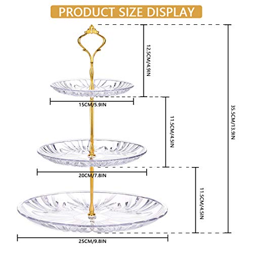 Ceuao Alzata per dolci A 3 Livelli, Alzate Portafrutta Cucina, Vassoio per Frutta e Dolci per per Party, Matrimonio, Compleanno, plastica trasparente, Asta di supporto in ferro