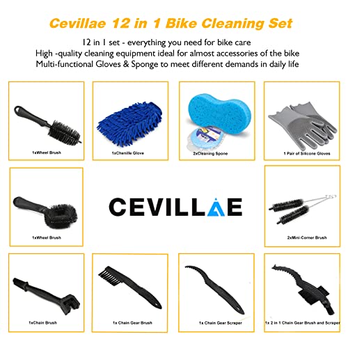 CEVILLAE - Set di 12 spazzole per la pulizia della bicicletta, per mountain bike, bici da corsa, città, bici pieghevole