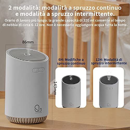 Cevillae Umidificatore Ambiente Bambini,Umidificatore Mini 320ml Umidificatore Bambini Silenzioso,USB Oli Essenziali Umidificatore Ultrasuoni Diffusore Con 7 Colori LED
