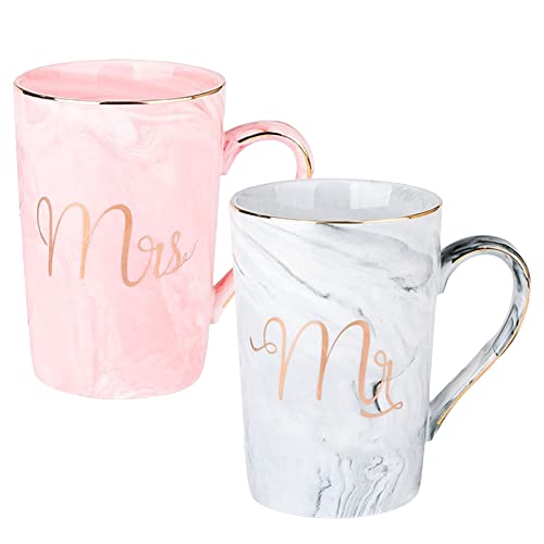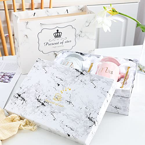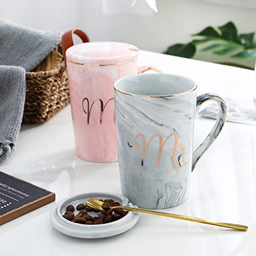 CEWROM Mr e Mrs Tazze, Tazza Mr Mrs Regali di Natale Set Due Tazza Regalo con Coperchio e Cucchiaio di Marmo Regalo Natale per Coppia Lui e Lei Anniversario Regalo Sposi Regali di Natale Nonni/Coppia