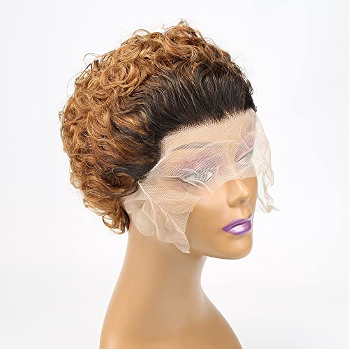 CEXXY Parrucca Corta Riccia Parrucca Brasiliana Naturale Dei Capelli Umani per Donne 150% Densità 13x1 Lace Frontal Human Hair Wig Con Attaccatura Pre-pizzicata (8 Pollici, 1B/30)