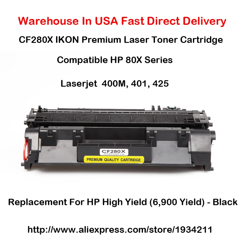 CF280X 80X Series Laser Toner Cartridge Compatible For HP LaserJet 400M, 401, 425 High Yield (6,900 Yield) - Black