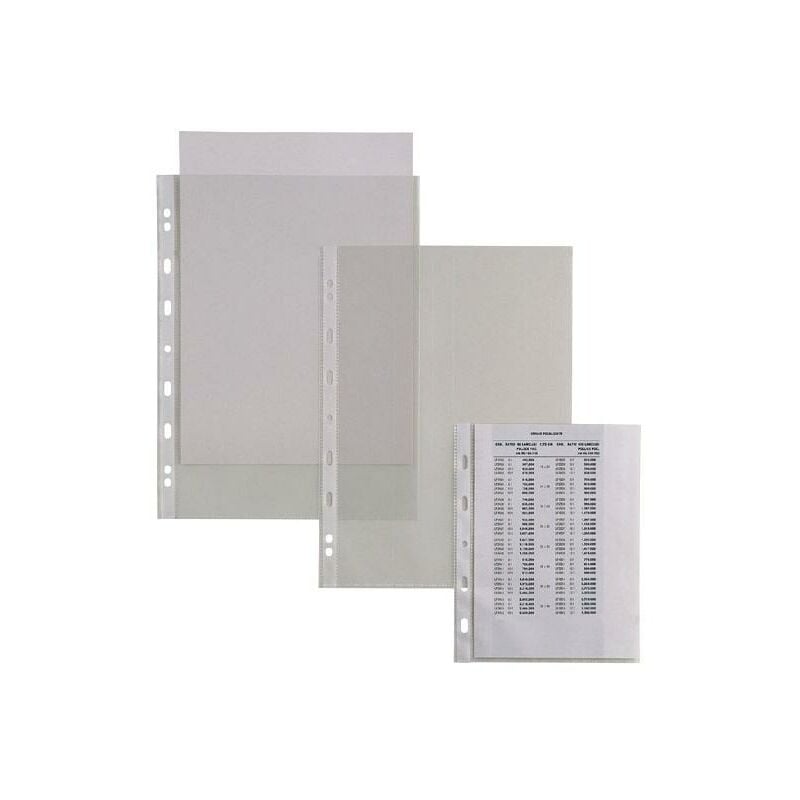 Per affidarsi alla tradizione ruvida. Buste in PP buccia spessori alto, medio, leggero, con foratura universale rinforzata. Ideali per archiviare qualsiasi tipo di documento. Larghezza 220 mm Altezza 300 mm Quantità per unità 50 Unità per pacco 18 Quantità per pacco 900 pezzo(i) Formato 220 x 300 mm Colore del prodotto Trasparente, Bianco Materiali Polipropilene (PP) Tipo rifinitura Opaco Apertura della tasca Lato Paese di origine Italia