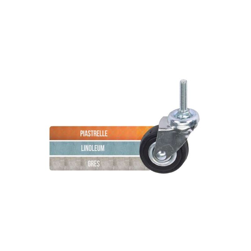 Supporto A Perno Filettato Girevole, In Acciaio Stampato, Zincato. Ruota In Gomma Nera Con Nucleo In Polipropilene, Mozzo A Foro Passante.Generalmente Utilizzate Per: Vetrine Ed Espositori Per Negozi, Carrelli Portautensili Con Bassa Portata. Acquistalo subito da CFadda e ricevilo comodamente a casa.