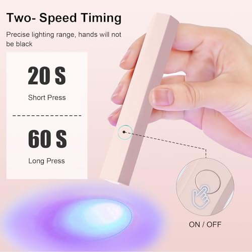 【Mini Lampada UV Led Unghie】Mini lampada uv led unghie portatile adotta un design a forma di corpo unico, che funziona sia con le unghie corte che con quelle lunghe e può asciugare la smalto gel in modo rapido e uniforme. La sensazione di velluto rende il processo di manicure più confortevole e facile.