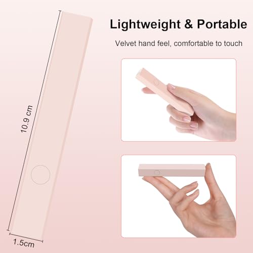 【Mini Lampada per Unghie Leggera e Portatile】Questa mini lampada per unghie a led è piccola e leggera, con un design minimalista di 10,9*1,6*1,6 cm, può essere trasportata ovunque, sia che siate in viaggio d'affari o in viaggio, potete facilmente metterla nello zaino senza alcuna pressione, permettendovi di godervi il vostro viaggio nella nail art in qualsiasi momento e ovunque!