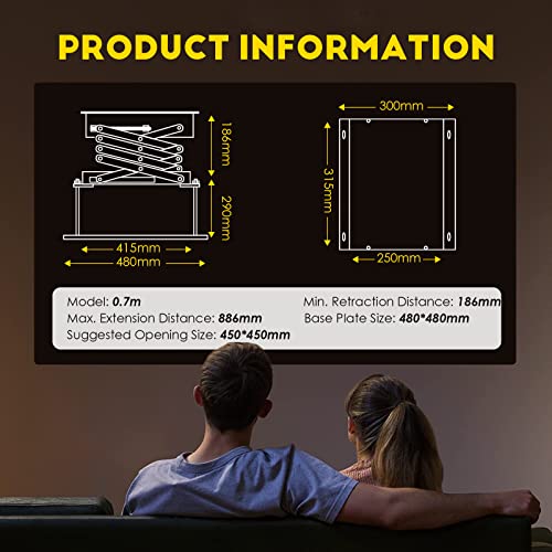 CGOLDENWALL 70cm Proiettore Elettrico Ascensore Montaggio A Soffitto Proiettore Gancio Montaggio Proiettore con Telecomando e Doppio Motore- Carico Max 7kg 48*48cm Piastra inferiore personalizzabile