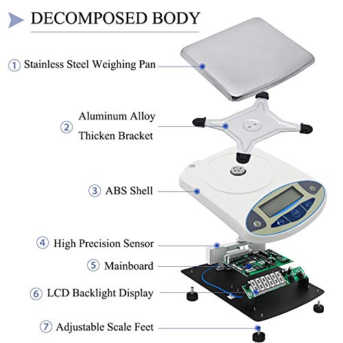 CGOLDENWALL Bilancia analitica digitale di precisione Bilancia da laboratorio Bilance per gioielli Cucina 0,1 g Calibrata e pronta per l'uso (5kg,0.1g)
