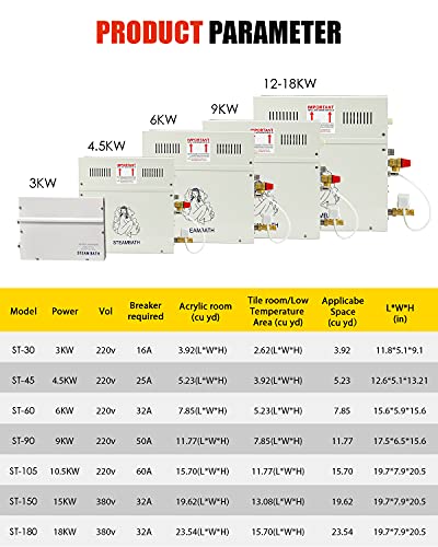 SERVIZIO E GARANZIA - Questo perfetto generatore di Bagno a vapore ha una garanzia di un anno. Abbiamo anche un team di assistenza online per risolvere i problemi in qualsiasi momento.