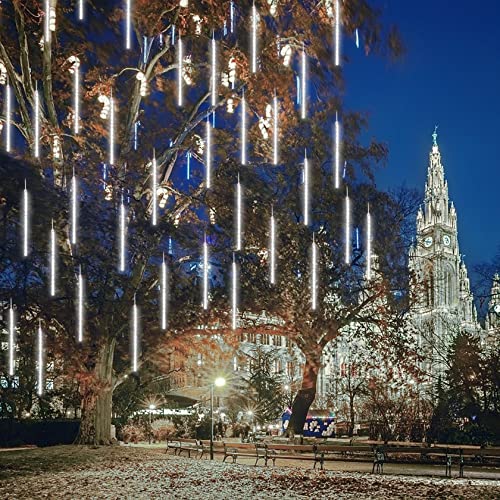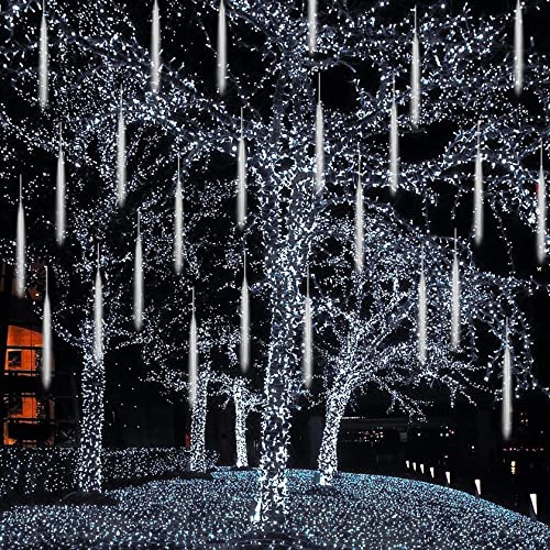 CGUOZI Luci Della Pioggia di Meteore, 30cm 8 Tubes 192 LEDS Meteor Luci Natale Luci, Impermeabili Meteor Shower Light per Festa di Nozze Decorazione All'aperto Bianco
