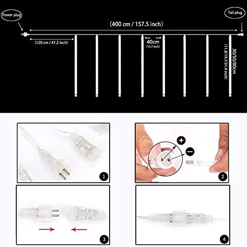 【Specification】 - CGUOZI Falling Rain Lights: lunghezza del tubo: 30/50/80 cm, numero di tubi: 8 tubi, Tipo di spina: spina europea. 400 cm di lunghezza totale del cavo in PVC (cavo decorativo principale da 280 cm + cavo con spina da 120 cm).
