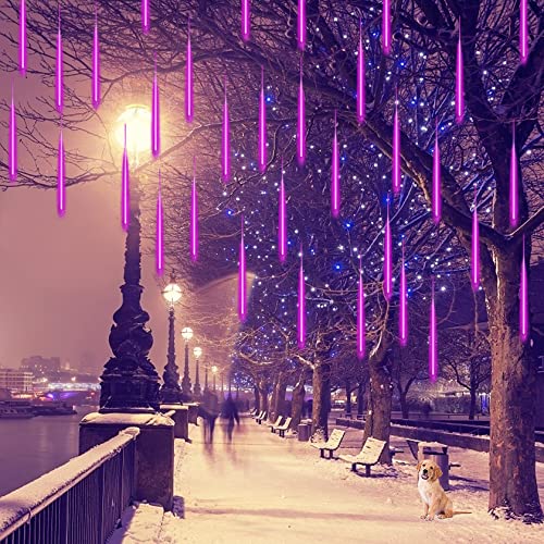 CGUOZI Luci Della Pioggia di Meteore, 50cm 8 Tubes 384 LEDS Luci a Stringa LED Impermeabili Drop Icicle Fairy String Lights per Natale Halloween Holiday Party Patio Outdoor Viola