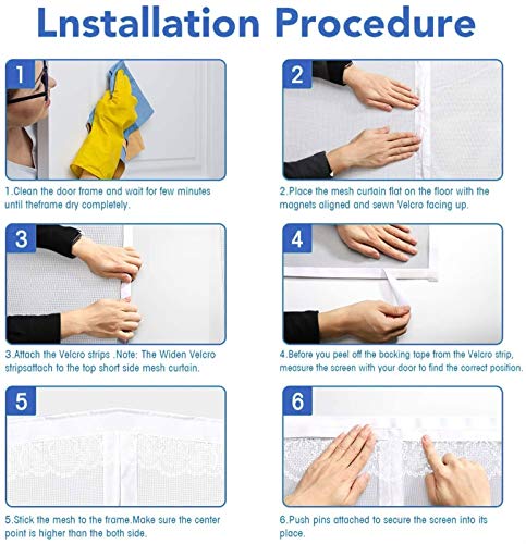 Montaggio semplice senza forare: Con l'aiuto di un nastro adesivo, la zanzariera magnetica può essere facilmente e velocemente attaccata sul perimetro del vano senza foratura. La zanzariera NON è RIDUCIBILE. Si prega di misurare le dimensioni della porta prima di ordinare la zanzariera magnetica