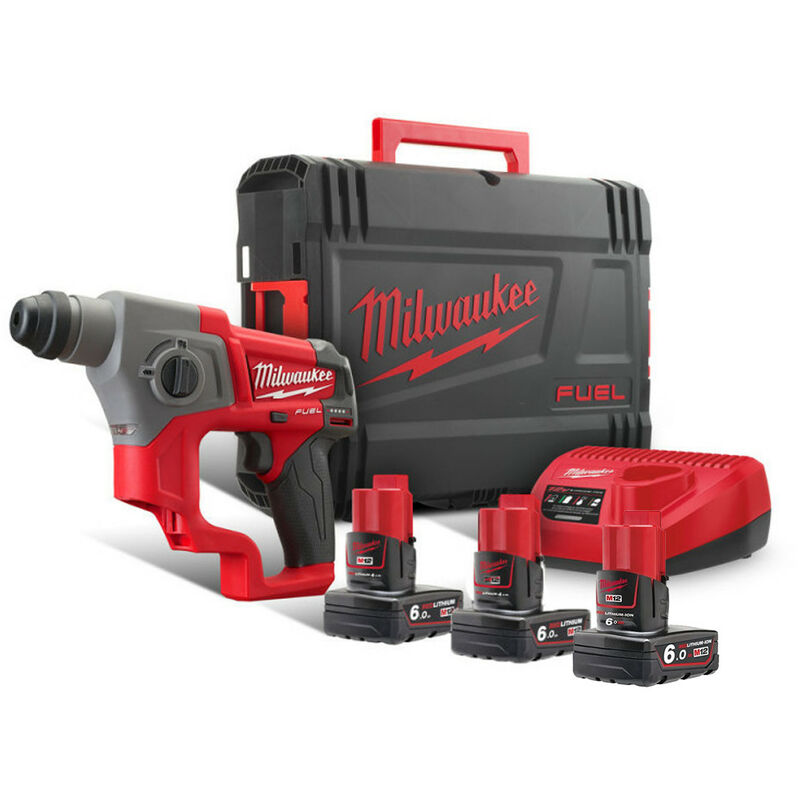 M12 ch-603x - tassellatore compatto 2 modalita' motore brushless sds-plus m12 fuel - 3 batterie da 6,0ah c/valigetta - milwaukee