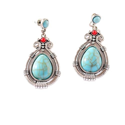 CHABER Orecchini A Goccia d'Acqua Color Argento con Pietre Turchesi Rossi Blu Etnici da Donna Vintage
