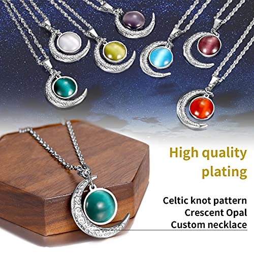 ChainsHouse Collana a Mezzaluna Nodo Celtico con 12 Pietre Portafortuna Personalizzabile Collana Ciondolo a Mezzaluna Incisione Personalizzata per Compleanno San Valentino Natale