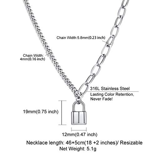 Design elegante: questa affascinante collana è composta da una catena cubana + catena con fibbia quadrata e un ciondolo. Il ciondolo è una serratura solida. Stile semplice ma elegante, che ben decora il tuo collo e mostra il tuo fascino unico.