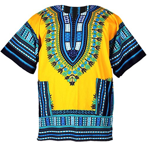 CHAINUPON Camicia africana in cotone Dashiki Tribal Festival Boho anni '60 Hippie Caftano, Giallo, S