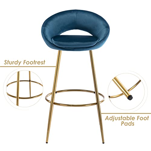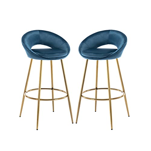Chairus Set di 2 Sgabelli da Bar Imbottiti in Velluto Cucina Sgabelli da Bancone con Schienale Vuoto Sgabelli Alti con Poggiapiedi (Marina)