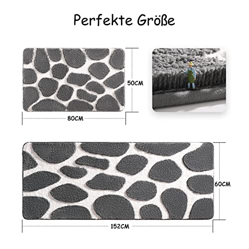 Chakme Tappetino da Bagno in Microfibra Antiscivolo, Super Morbido per Bagno, Camera da Letto e Soggiorno, 60×152 cm, Grigio Verdastro & Bianco