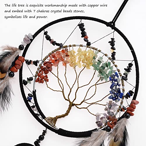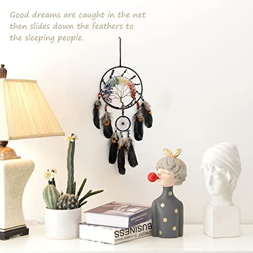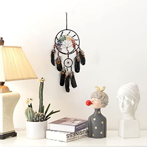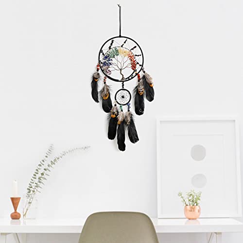 7 Chakra Albero della Vita Cacciatore di sogni Decorazione da parete con arcobaleno di cristallo di guarigione pietra fatta a mano piuma Nero DreamCatchers per camera da letto benedizione regalo di