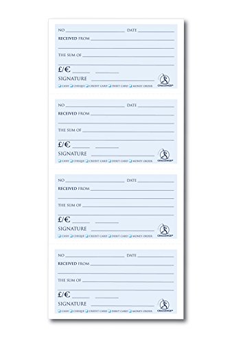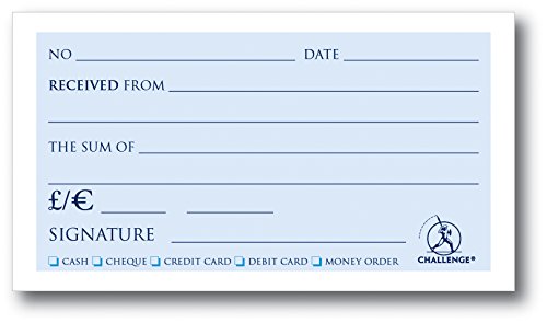 La ricevuta viene fornita con campi fissi per il numero di ricevuta, ricevuta da, somma di, importo in libbre/euro, firma e metodo di pagamento