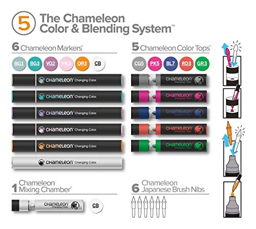 Il cofanetto TOUT SPECIALMENTE PROGETTATO per sfruttare il potenziale dei pennarelli CHAMELEON 6 CHAMELEON pennarelli + 5 CHAMELEON Color Tops Un cofanetto più economico rispetto all'acquisto di un pacchetto 5 pennarelli + un pacchetto 5 colori top