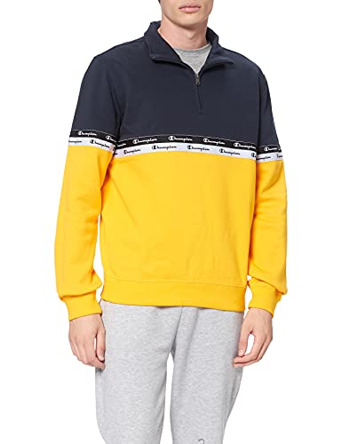 Champion American Tape Half Zip, Felpa, Uomo, Giallo (Oro)/Blu (Marino), L