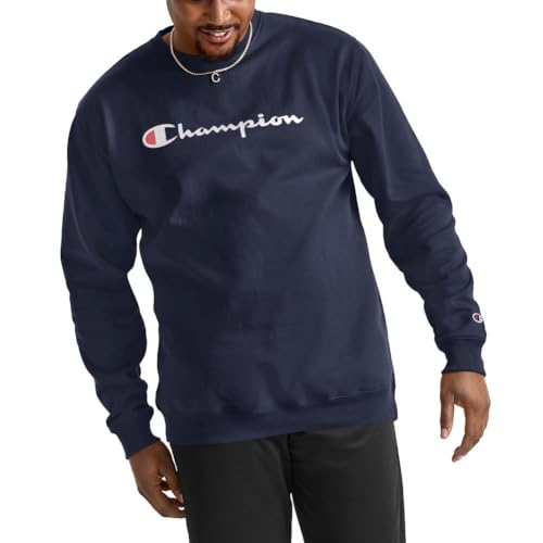 Champion Graphic Powerblend Fleece Crew Maglia di Tuta, Script Navy/Campione, XL Uomo